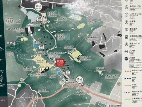 生田緑地は多摩丘陵の一角に位置しており、公園内はかなりアップダウンがあります。